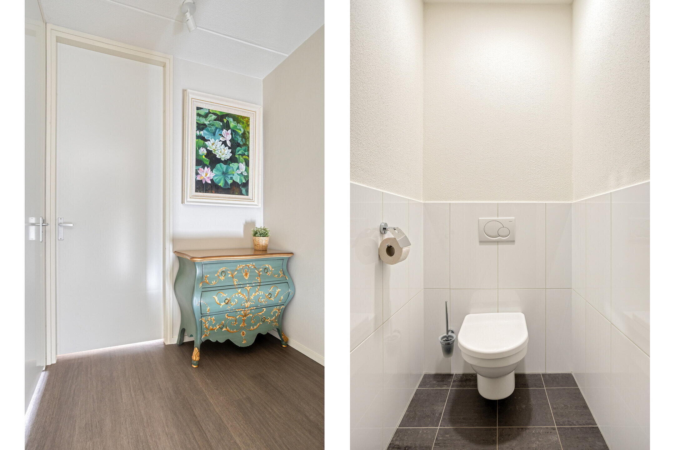 Vanaf de overloop is de separate toiletruimte met vrijhangend closet bereikbaar.